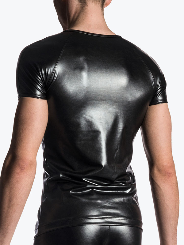 - Men Black Vinyl Sexy Zipper Tops