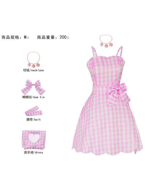 » Sexy Costumes » Barbie Movie » Barbie Live Pink Plaid Beach Dress With Necklace (including fancy dress)
