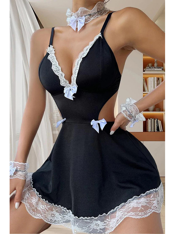 Women Sexy French Maid Lingerie Halloween Costume