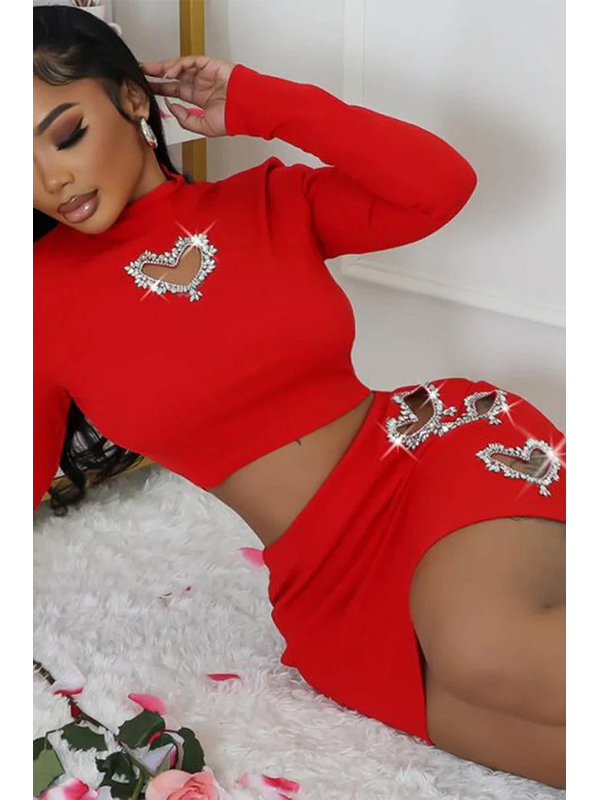 Sexy Rhinestone Hollow Out Two Piece Dress