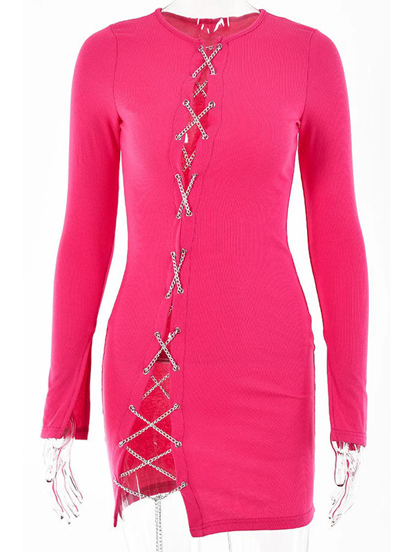 Women Chain Lace-up Hollow Out Sexy Mini Dresses