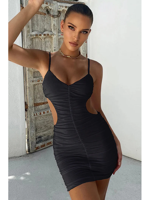 Home » Sexy Clubwear » Club Dresses » Women Sexy Pleated Low Cut Suspender Wrapped Buttocks Dress