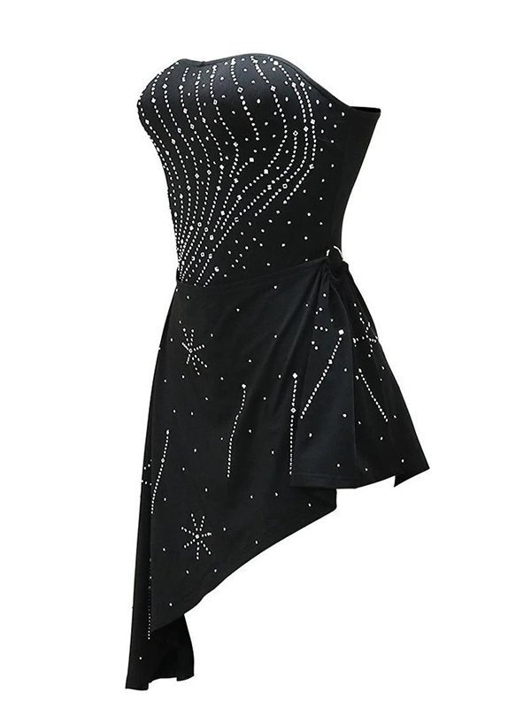 Women Sexy Solid Color Rhinestone Decor Sleeveless Dress