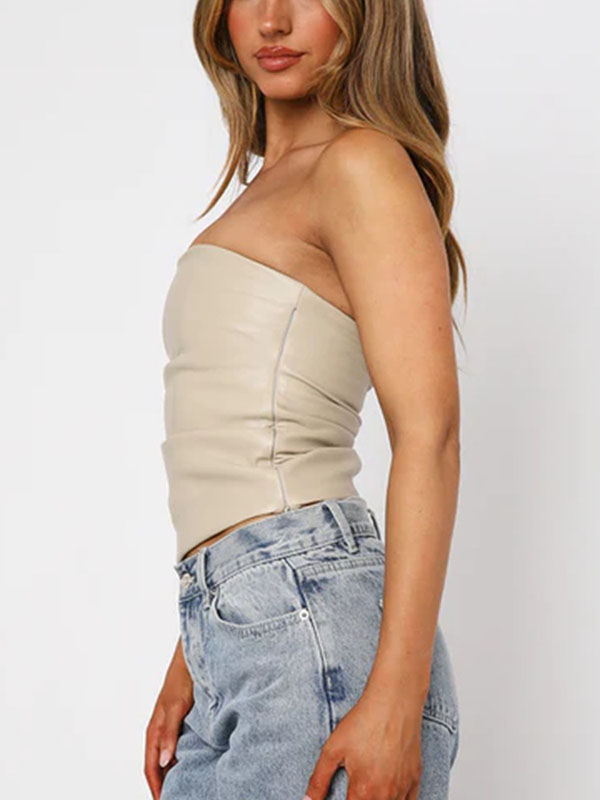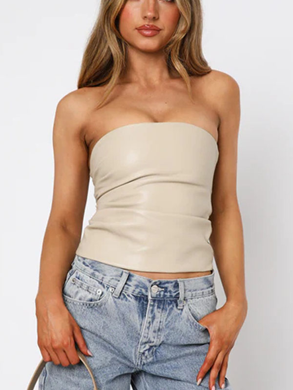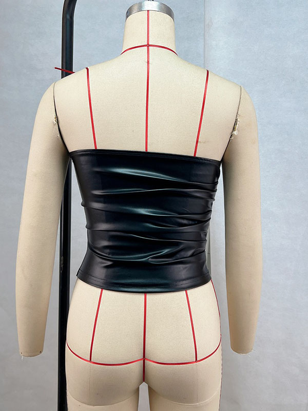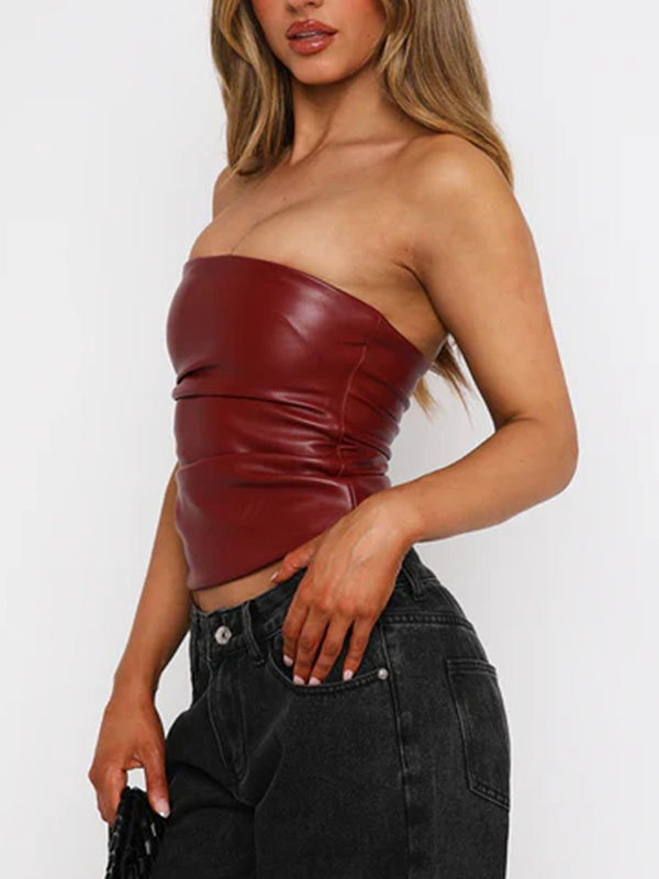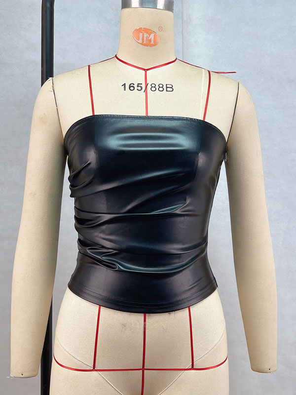 Women Sexy Faux Leather Off Shoulder Tops