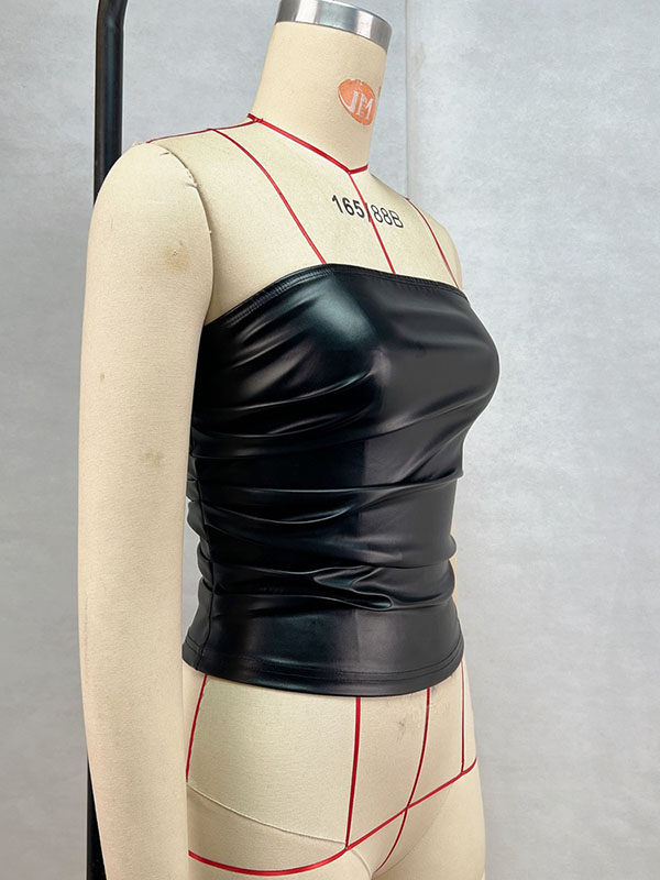 Home » Wet Look & Vinyl Clothing » Faux Leather » Women Sexy Faux Leather Off Shoulder Tops