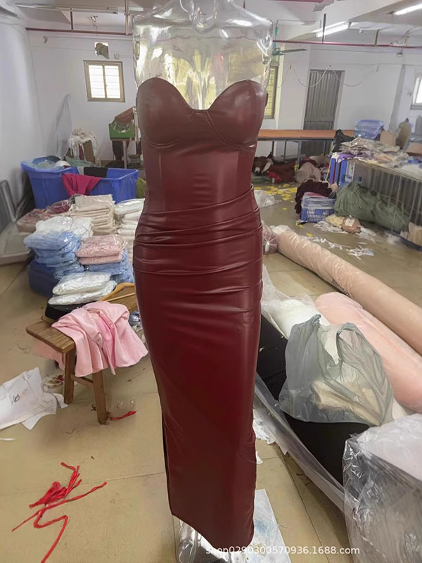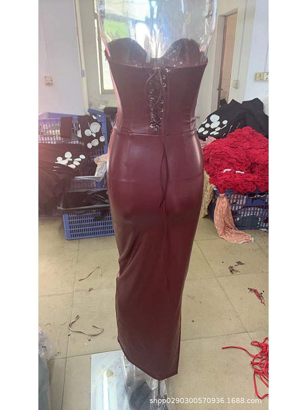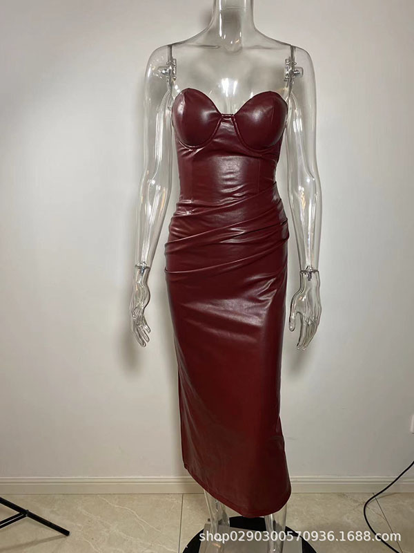 Women Sexy Faux Leather Off Shoulder MaxiDress