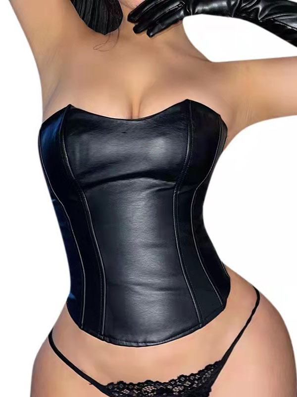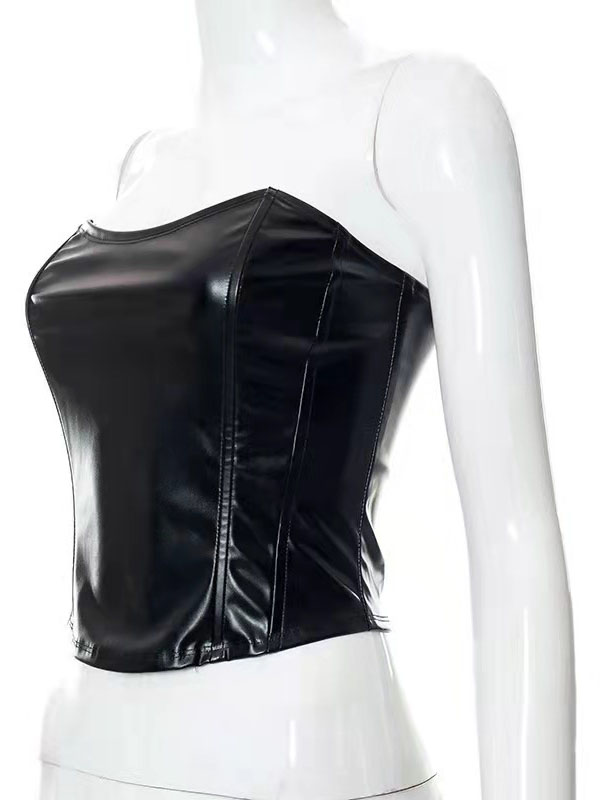 Home » Wet Look & Vinyl Clothing » Faux Leather » Women Sexy Faux Leather One Shoulder Tops