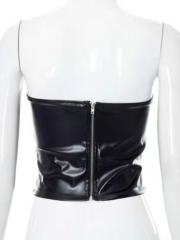Women Sexy Faux Leather One Shoulder Tops