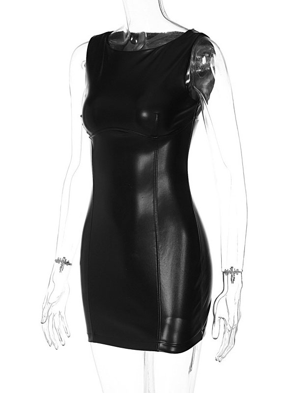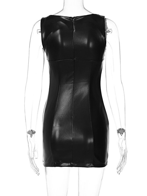 Women Sexy Faux Leather Mini Dress