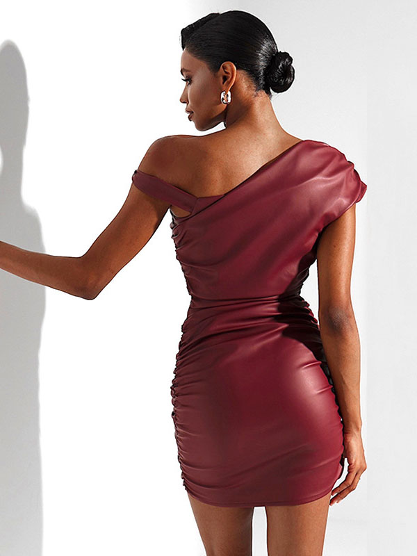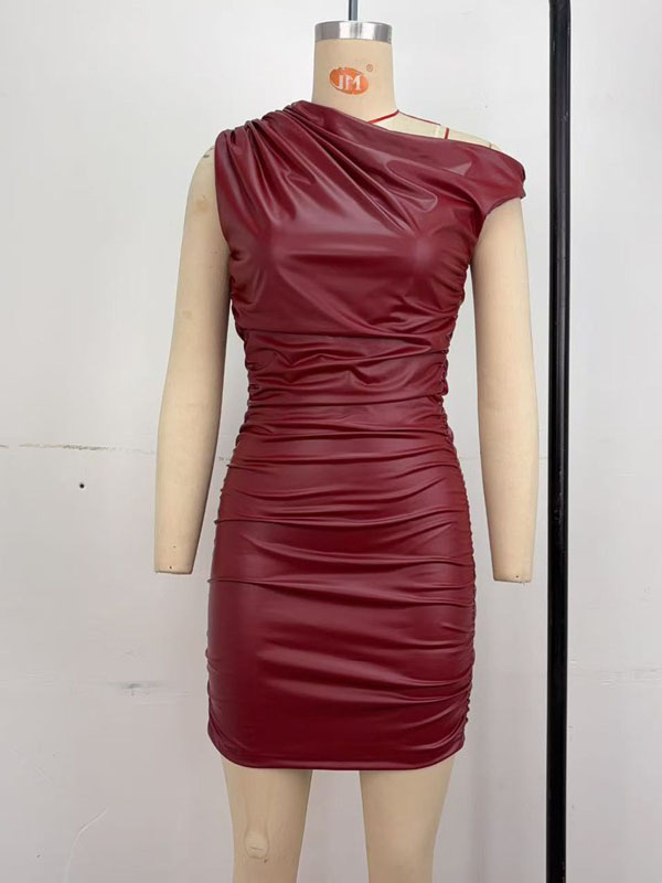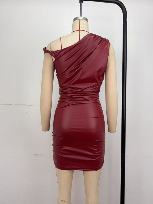 Home » Wet Look & Vinyl Clothing » Faux Leather » Women Sexy Faux Leather Mini Dress