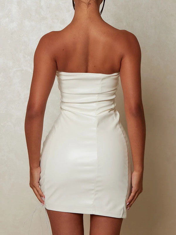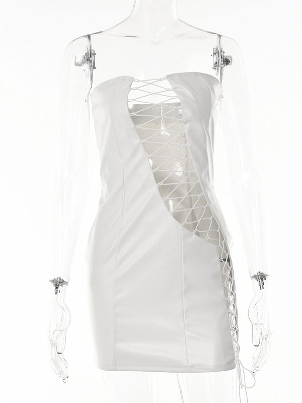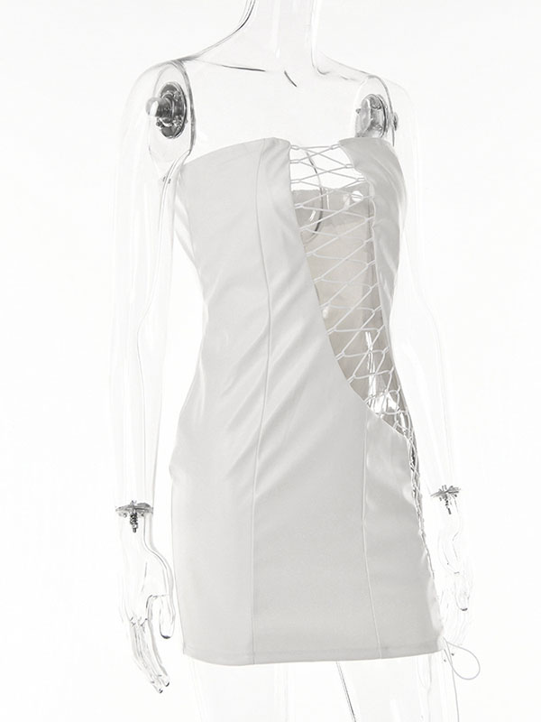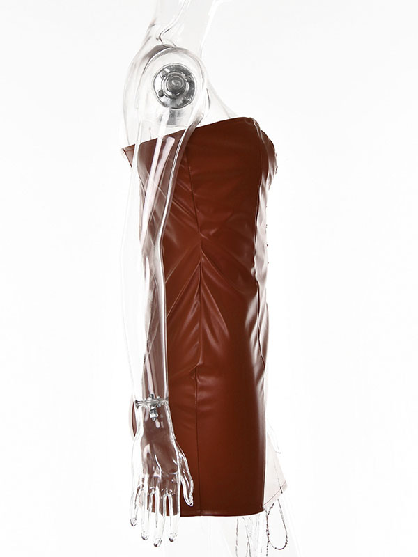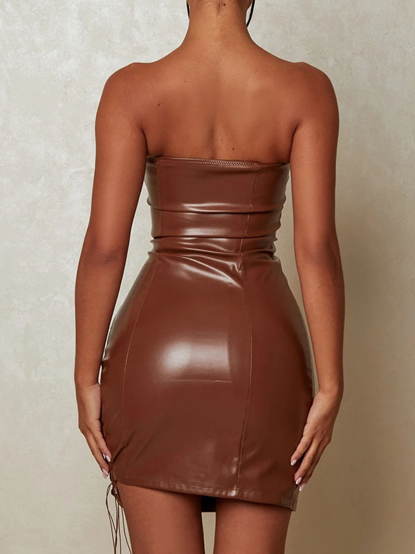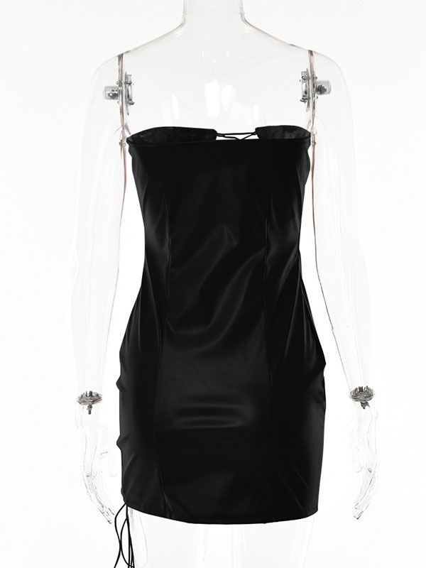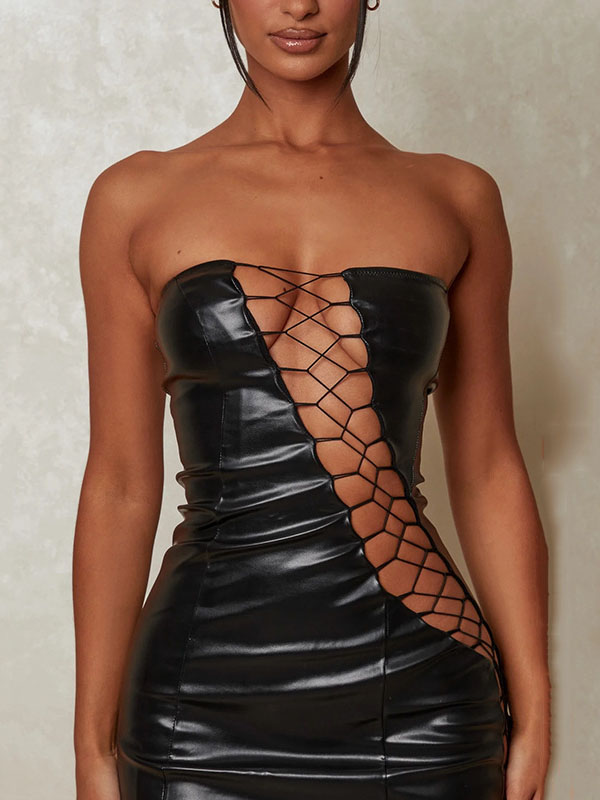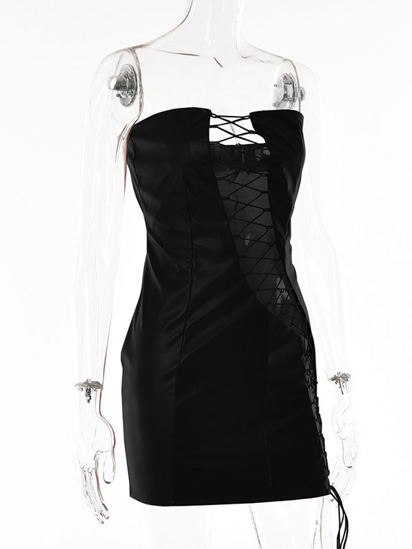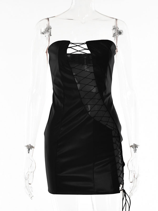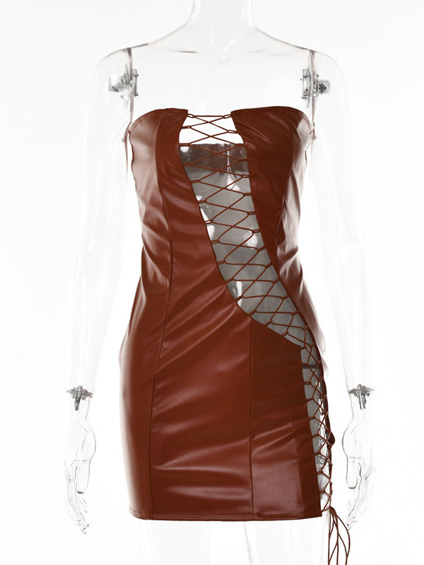 Women Sexy Faux Leather Lace Up Mini Dress