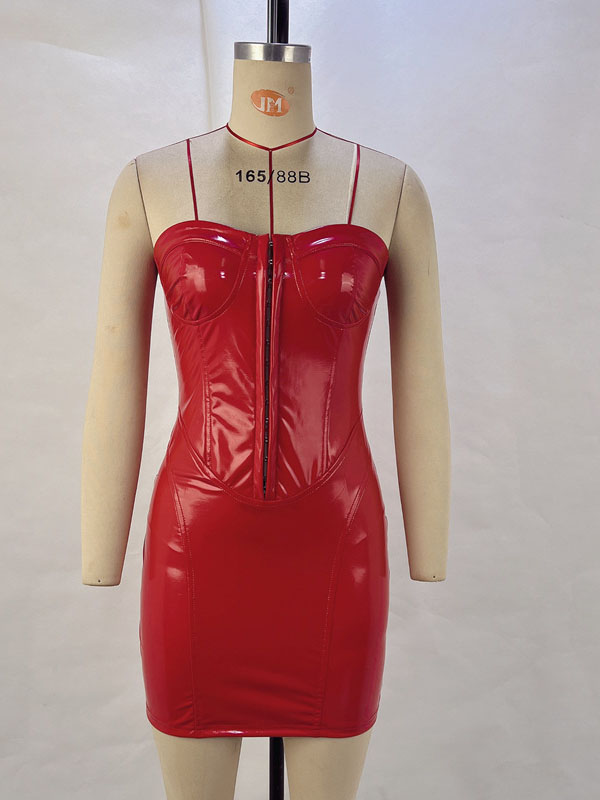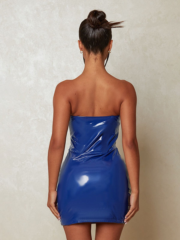 Home » Wet Look & Vinyl Clothing » Faux Leather » Women Sexy Faux Leather Off Shoulder Mini Dress
