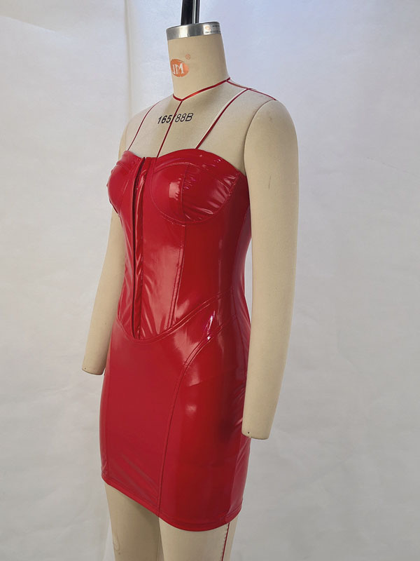 Women Sexy Faux Leather Off Shoulder Mini Dress