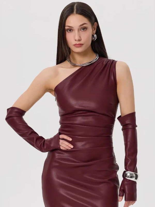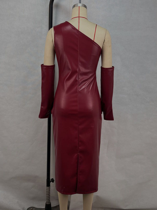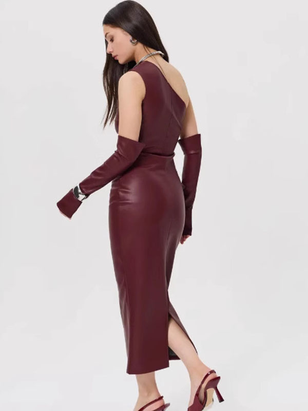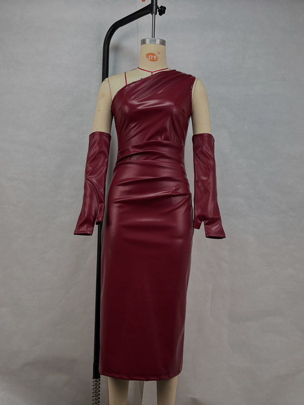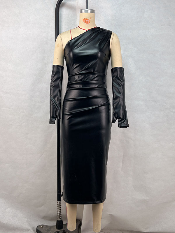 Women Sexy Faux Leather Off Shoulder Maxi Dress