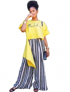 Women Irregular Roll Sleeve Letter Printed T-Shirt WE748261