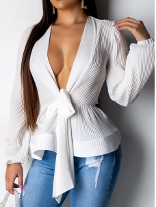 Women Autumn Deep V Neck Long Sleeve Blouses YDJR060
