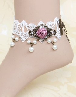 Vintage Pink Rose Lolita Anklet W920011D