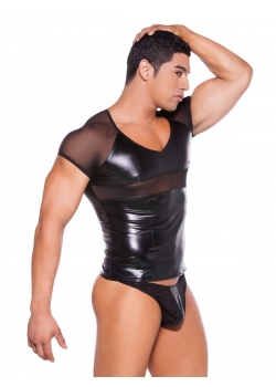 Men Sexy Vinyl Lace Up Tight Tops W930818A