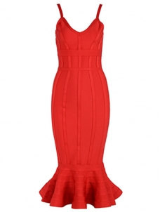Sexy V-neck Backless Fishtail Bandage Dress Red WF710008B