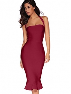Sexy Backless Bandage Fishtail Dress Red WF710011A