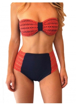Red Striped Detail High Waist Bikini Sets WT41906B