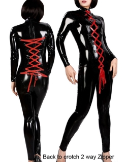 Sexy Gothic Black Wet Look Metallic Catsuit W35876