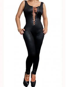 Women Sexy Sleeveless Zipper Vinyl Jumpsuit W926945