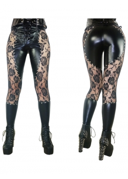 Black Wetlook Lace Vinyl Leather Legging W880531