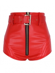 Sexy Lady Womens Shorts Wetlook PU Leather Front Zipper High Waisted Bodycon Shorts Bottoms with Bel... IM070