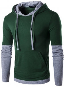 Green S-XXL Long Sleeve Patchwork Hooded T-Shirt W6600268A