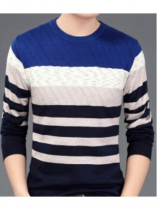 Blue Round Neck Striped Printed T-Shirt W6600271I